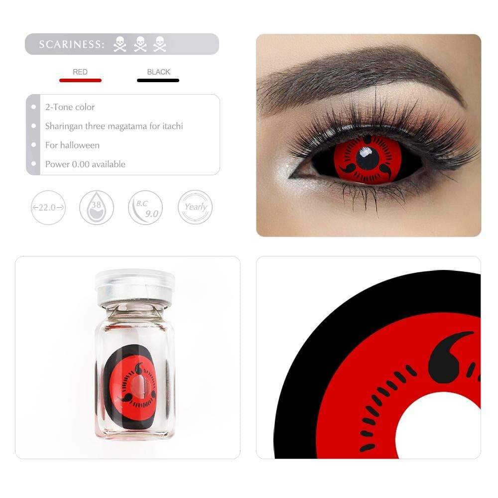 Have a try on our Sharingan sclera lenses! Do you want to be a member of the Uchiha Clan with cool Sharingan eyes? 3 Tomoe Sharingan will help you achieve it. Show your dojutsu and emotional power! Your perfect choice to finish your Uchiha costume.