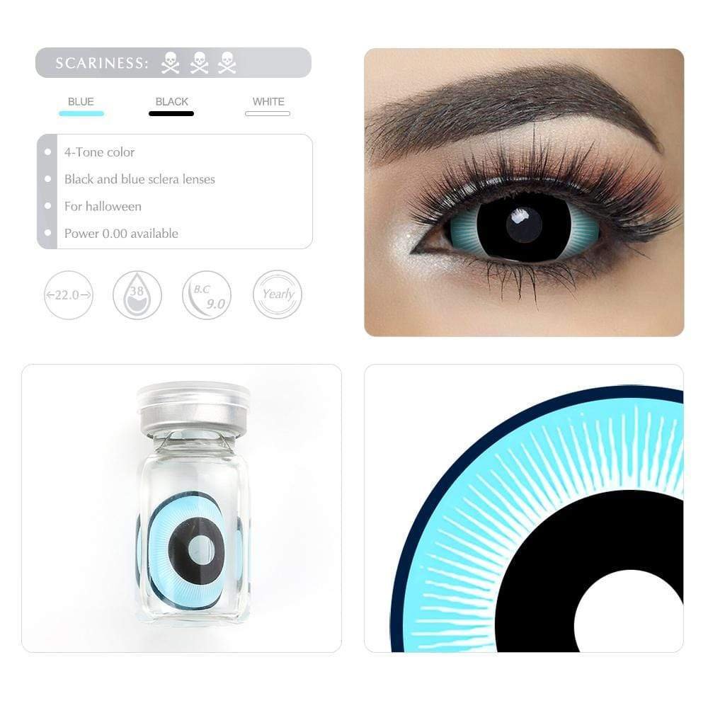 How about the combination of blue sclera and enlarged black pupil? It’s a good choice for your cosplay. These spooky lenses can be the most attractive part of your costume and give people a scare.