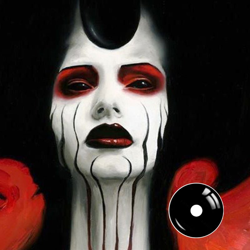Get the crazy look with these Black Sclera Lenses! Your friends will truly be amazed when you show up wearing these sclera contact lenses. For use with Halloween costumes, cosplay, or just for having some fun!