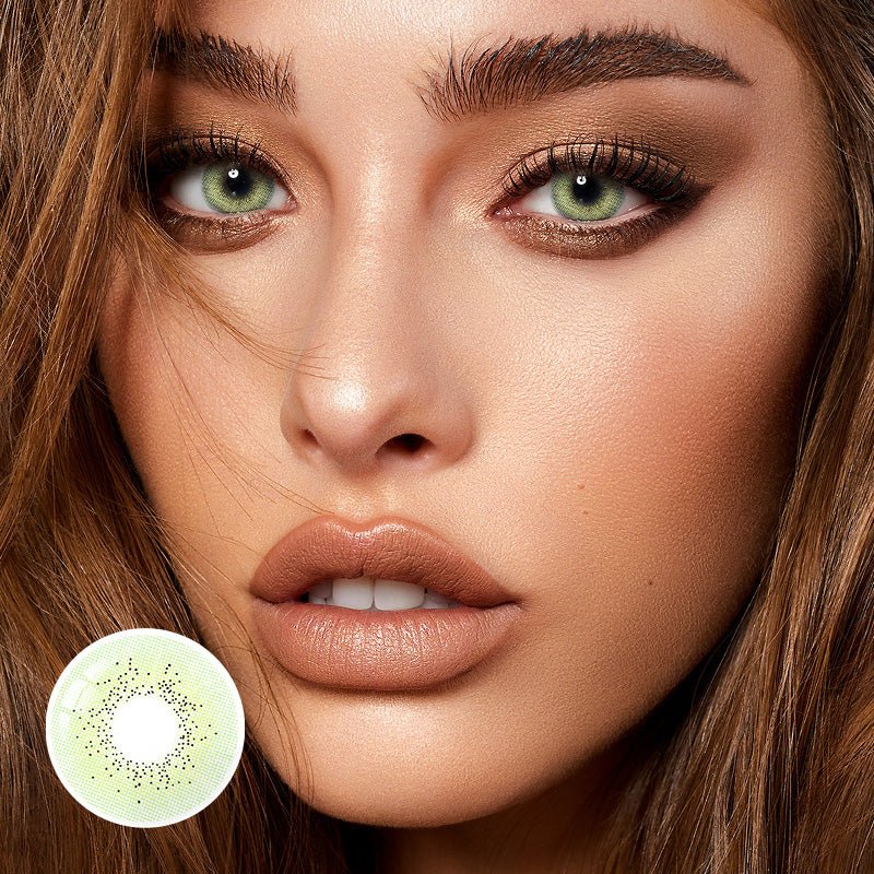 Applicable to light and dark eyes! Ocean Green’s unique blend of yellow & green hues creates an unparalleled soft image, these contacts add depth and warmth to your eyes. The frosty design follows a realistic pattern that will strive to keep your eyes looking natural.