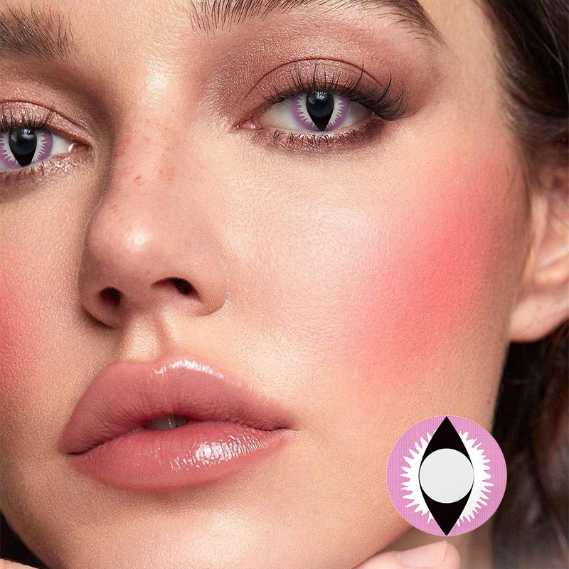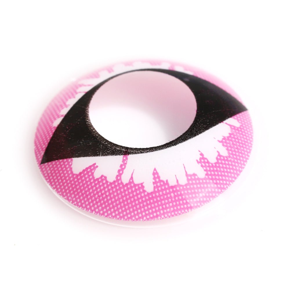 Light up your eyes with these gorgeous Pink Dragon Eye crazy contact lenses. These brightly contact lenses feature luminous pink with a white starburst and black vertical pupil. The vertical pupil makes your eyes look really freaky, while the vibrant colors make sure you really stand out.