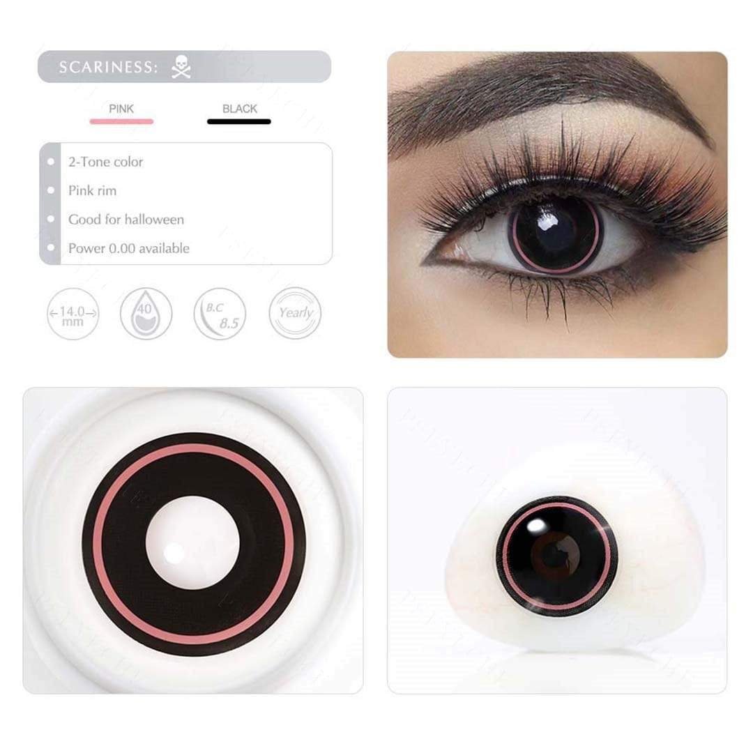 Pink Rim crazy contacts have a solid black color and a pink outer ring. While pursuing nature, it also brought invisible terror to people.