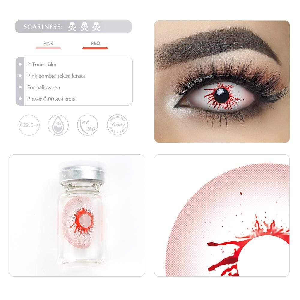 The spreading bloodstain pattern makes these lenses suitable for you to play a role as a vampire, zombie, demon, and any character with scary blood eyes. They are so ideal for the Halloween costume and costume party. Get the Pink Zombie Sclera lenses and change your look!