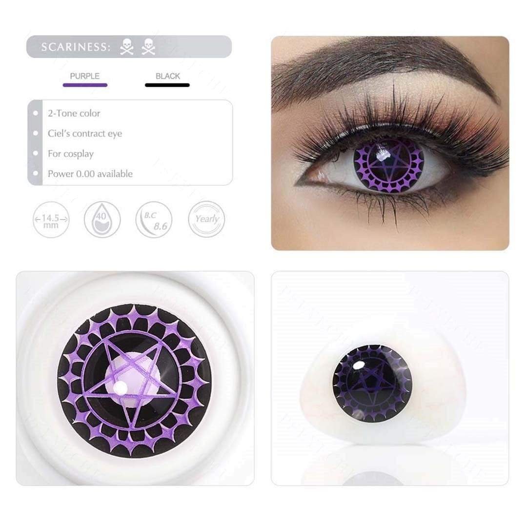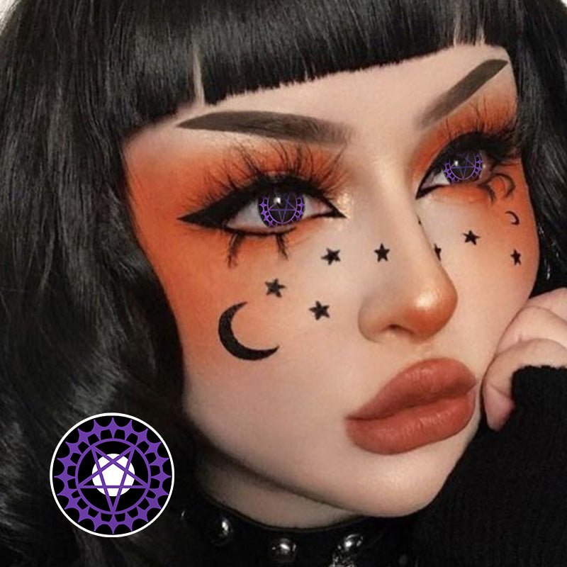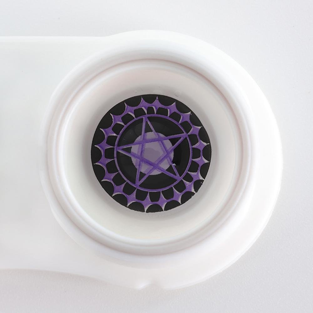 Purple Contract contacts are very personal. The black background can naturally cover the pupils. The cross pattern of red five-pointed stars makes your eyes more unique.
