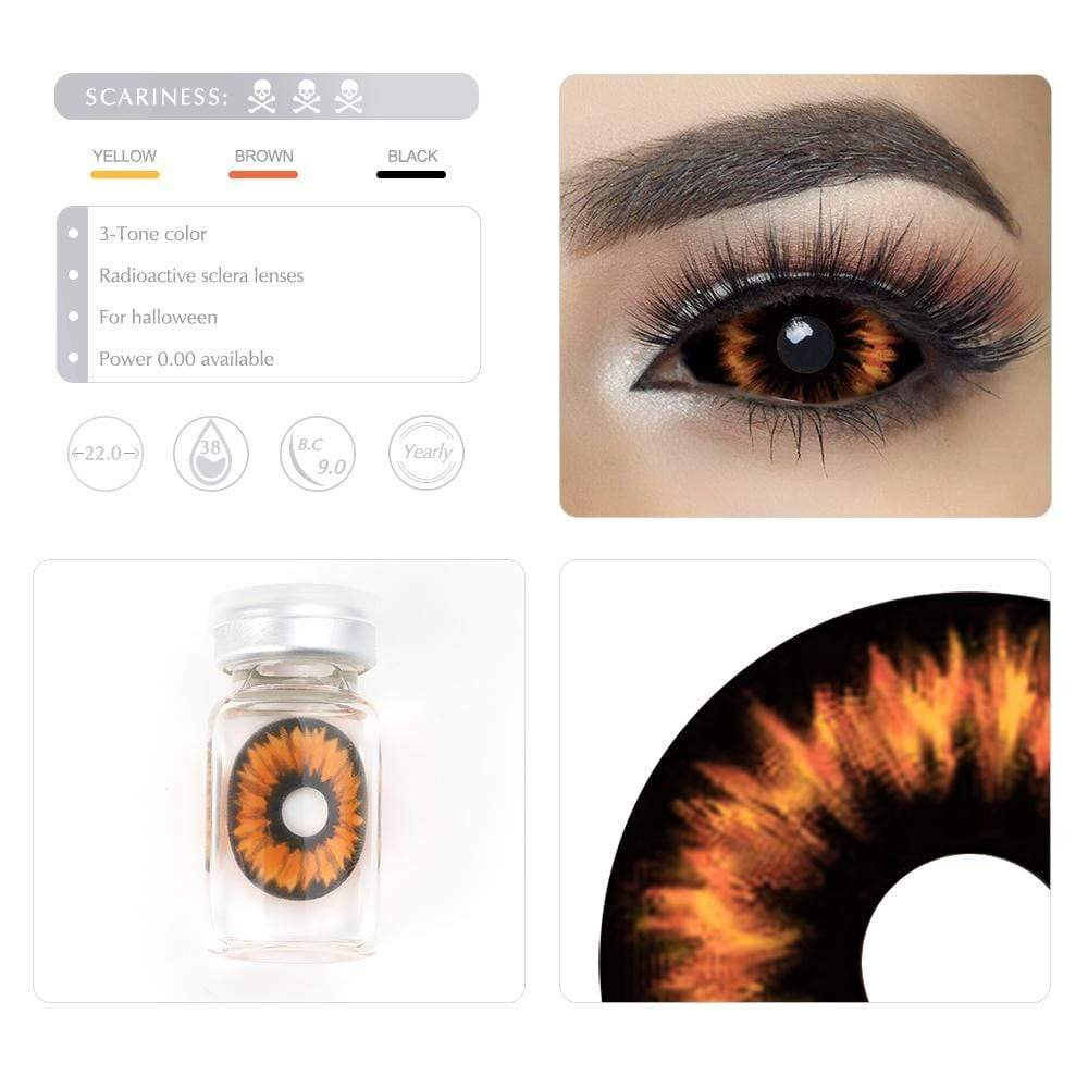 These sclera contact lenses which entirely cover the sclera and iris. It’s like the warm sunglow break through the dark sky. They are a beautiful pair of lenses complimenting many outfits and costumes.