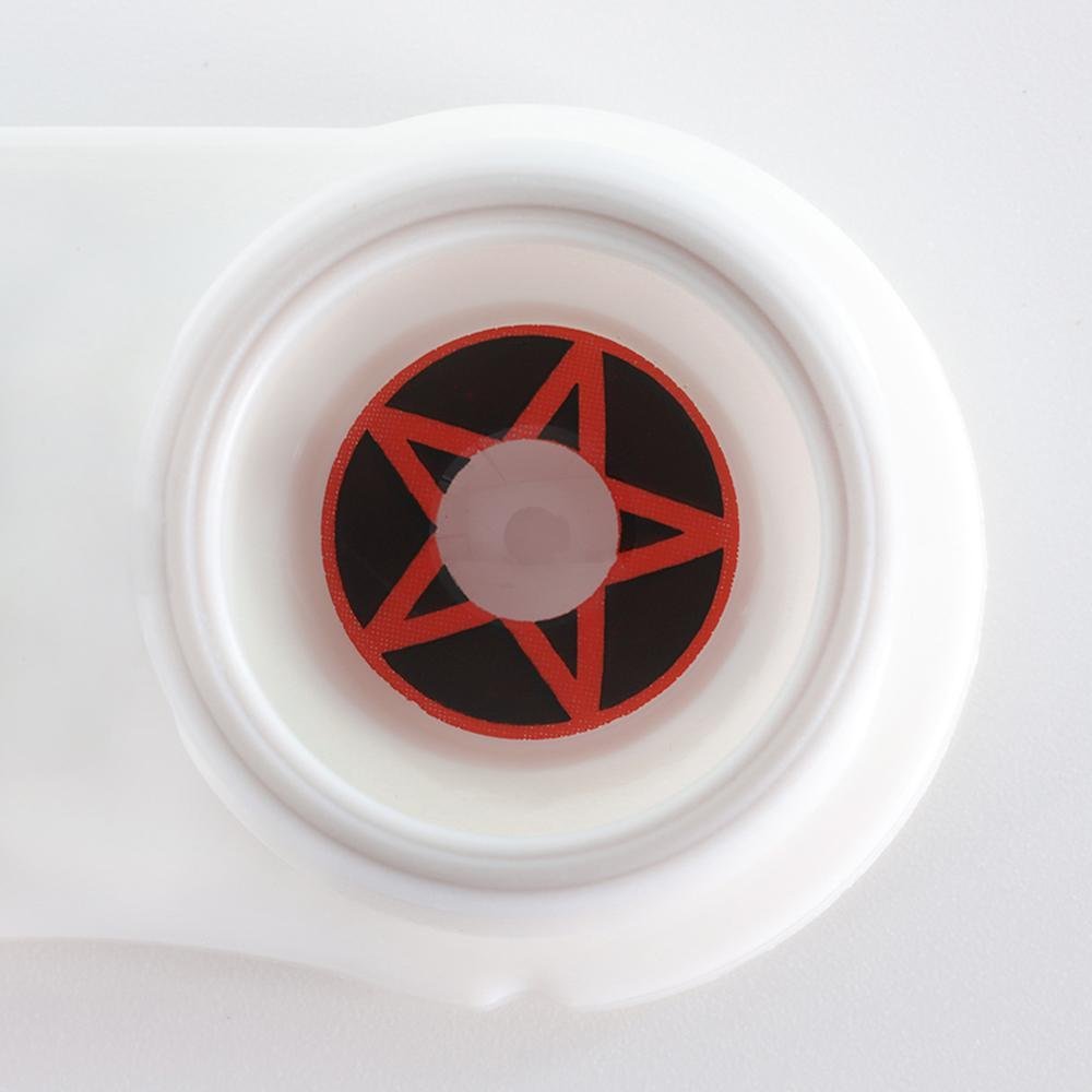 These lenses feature a red star and a black background that fully cover your iris. Giving you the perfect pagan witch appearance! Wear these contact lenses at Halloween, with a wicked witch, or an evil sorceress costume, and truly freak out your friends!