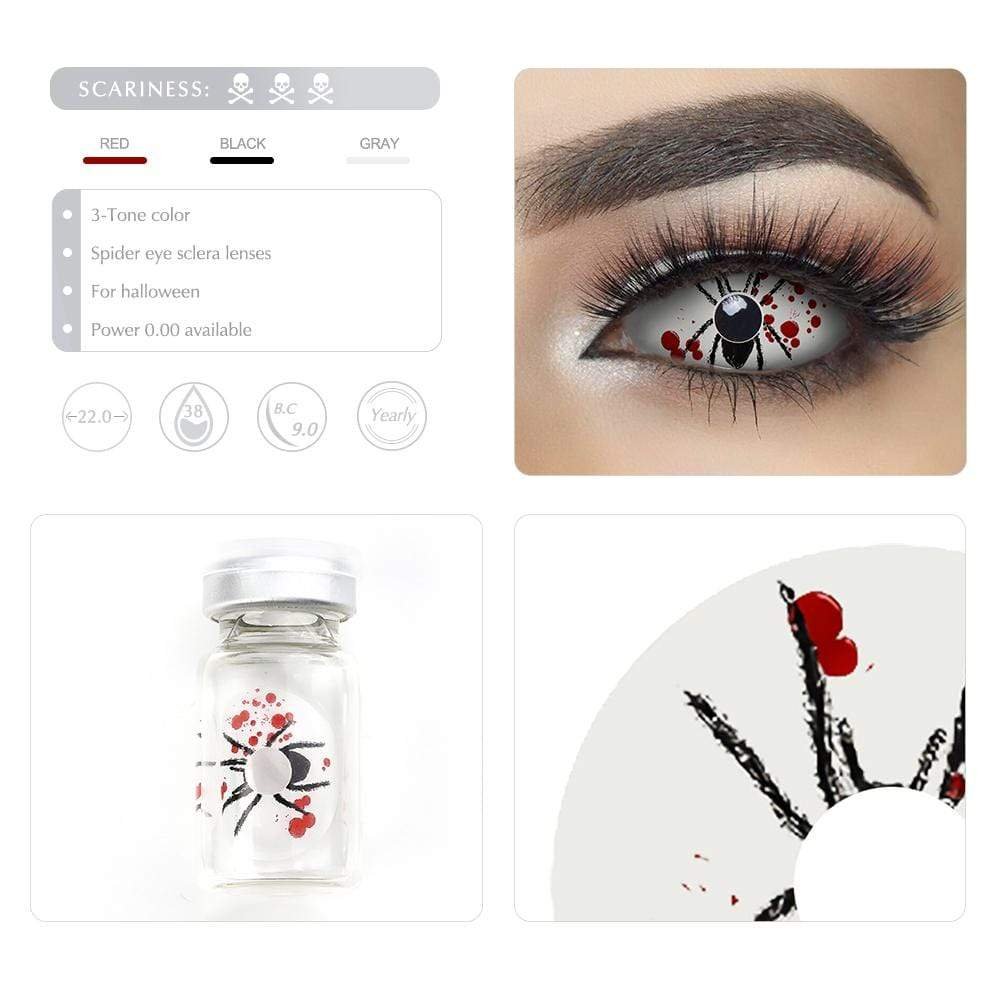 It’s really spooky if there is a spider in your eye! These sclera lenses are designed with some spreading bloodstain and a crawling spider to achieve your special requirement and fit your costume. The big printed pattern is designed to fully cover your iris and bring you an astonishing and attractive new look!