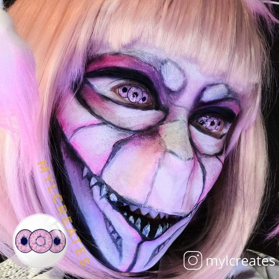 To be a creepy mummy with these scary lenses! With an incredible three-iris look in your eyes, which will bring everyone unprecedented shock and impact. These lenses will cover your sclera with a diameter of 22mm. The spreading purple pattern makes these lenses suitable for you to play the role of a mummy. They are so ideal for Halloween costumes and costume parties.